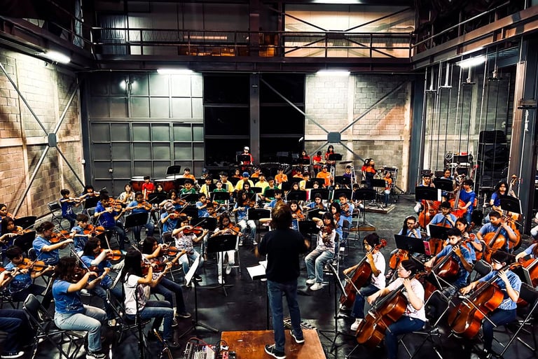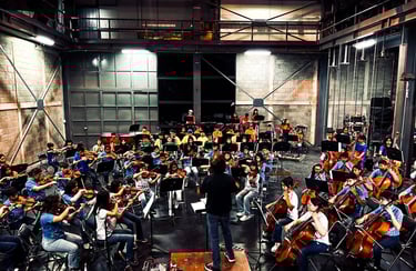 Cada año se conforma una orquesta de selección integrada por los estudiantes más destacados, quienes participan en un proceso de selección en el que además de valorar su técnica musical, se contempla su compromiso e involucramiento comunitario.